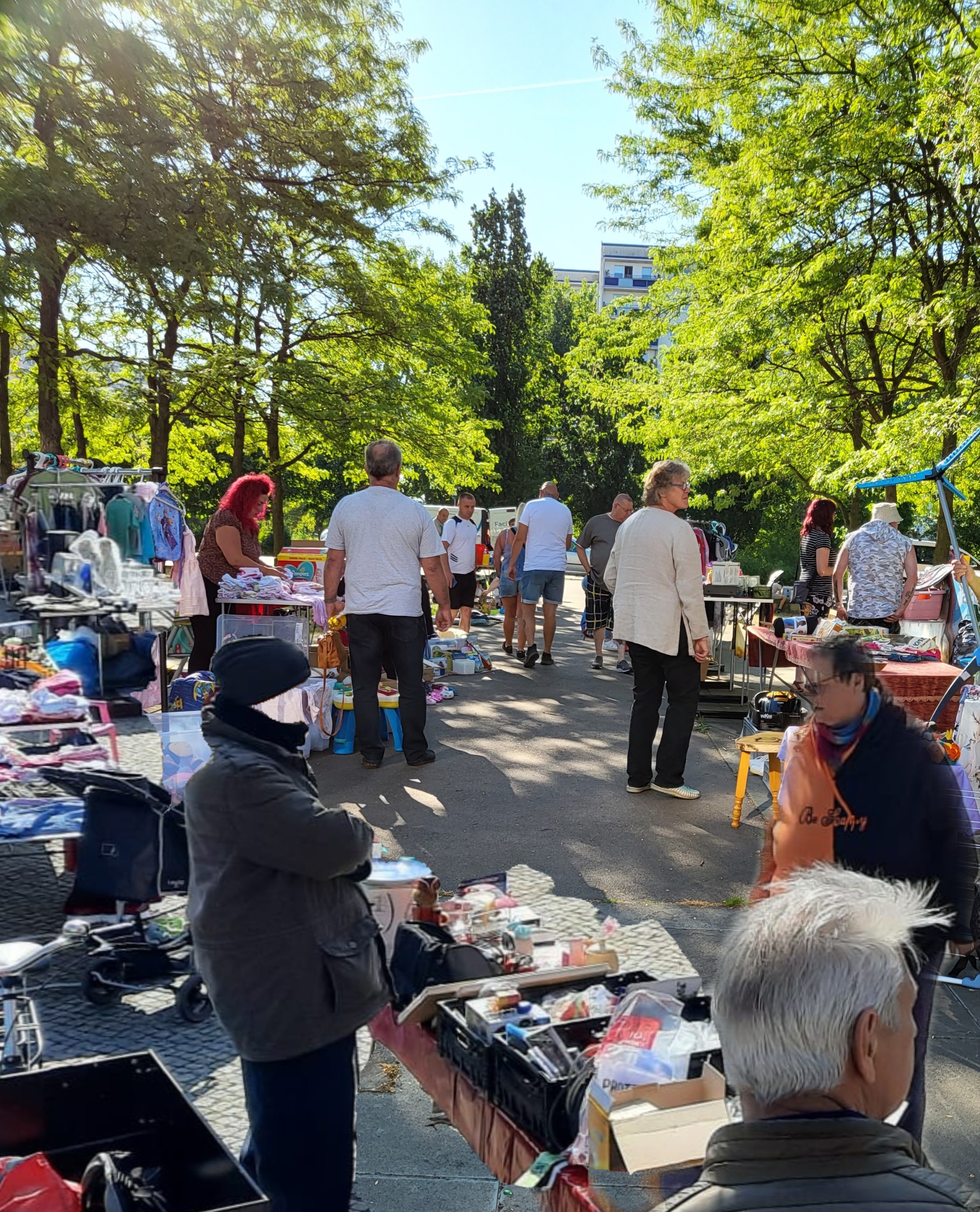 Wir sind ein Trödelmarkt auf dem Barnimplatz, wo sich Nachbarn treffen und ohne Kosten Private Sachen verkaufen. Das dadurch entstandenen familiäre Klima, lässt uns stetig wachsen. Die Verkäufer oder Besucher erfreuen sich zum 1.Sonntag (vom Apri-November) im Monat, da es familiä, Respektvoll und freundlich daher geht. Seit 6 Jahren konnten wir ohne Probleme und Kosten, Jahr für Jahr den Trödelmarkt abhalten. lch möchte kein Gewerbe machen und Geld verdienen. Ich möchte das viel Nachbar sich treffen und kennenlernen. Und der Barnim-Platz nicht leer steht und durch Vandalismus verschandet wird. paher sollte die Gebühren und Genehmigungen vom Ordnungsamt und Grünflächenamt übernommen werden.
