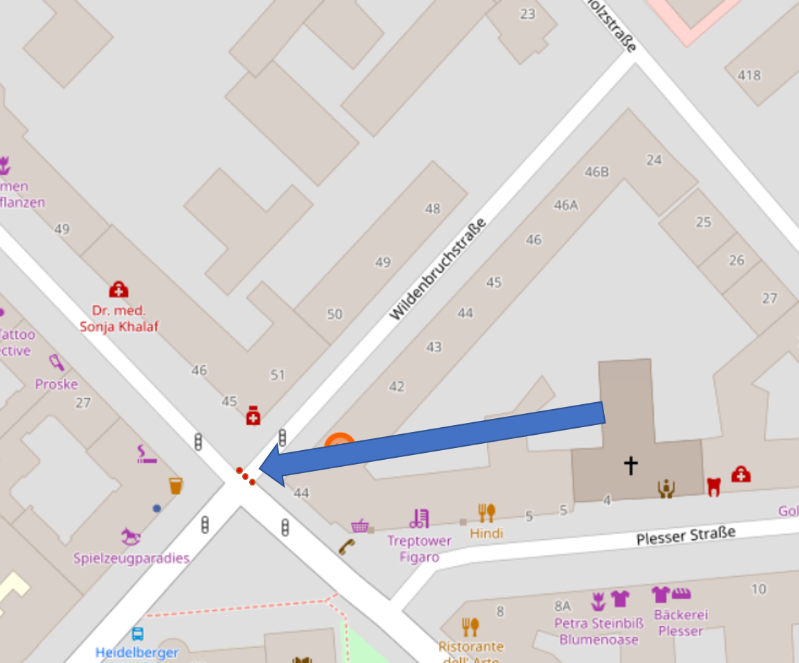 Ein lautes Eck zur Karl-Kunger/Elsenstraße hin, Tempo 30 in diesem Abschnitt der Wildenbruchstraße wird nicht beachtet. Ist keine Durchgangsstraße, wird offensichtlich als Abkürzung verwendet, reines Wohngebiet mit Kita. Oft starkes, lautes Beschleunigen von KfZ weit über 30 zu allen Tages- und Nachtzeiten.