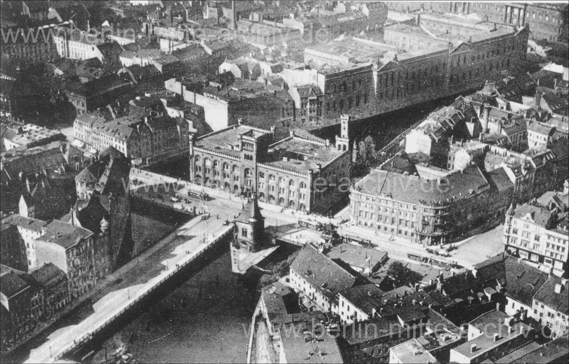 Der Mühlendamm war jahrhunderte lang mit den Mühlen, Kolonnaden und Handelshäusern ein kleines eigenes Viertel mitten in der Spree, verbunden mit dem Köllnischen Fischmarkt, dem Molkenmarkt und über die Fischerbrücke verbunden mit den südlichen Stadtteilen. Auch beim vorletzten Umbau 1896 blieb die Fischerbrücke erhalten und war über der Spree T-förmig mit dem Mühlendamm verbunden - eine anspruchsvolle Ingenieursaufgabe. Zusammen mit den Gebäuden auf dem Mühlendamm, der tatsächlich noch ein Damm war und nur drei Durchlässe für die Spree hatte (Schleuse, Mühlengerinne und Wehr) war diese vorletzte Mühlendamm-Gestalt immer noch eine sehr differenzierte und dem historischen Ort angemessen. Letzterem trug man zum Beispiel auch dadurch Rechnung, dass die Standbilder der Markgrafen Albrecht der Bär und Waldemar an der Einmündung der Fischerbrücke aufgestellt wurden.