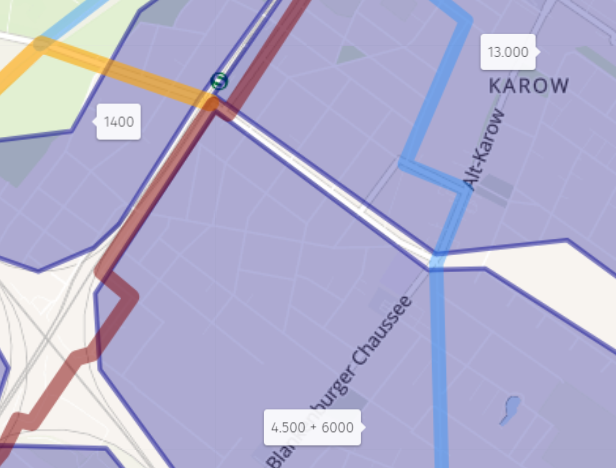 - bessere Anbindung für die Mehrheit der Einwohner:innen im Siedlungsband Richtung Bernau (perspektivisch ~50.000 bis Zepernick östlich vs. ~20.000 westlich der Bahntrasse – jeweils zuzüglich der geplanten Wohngebiete)