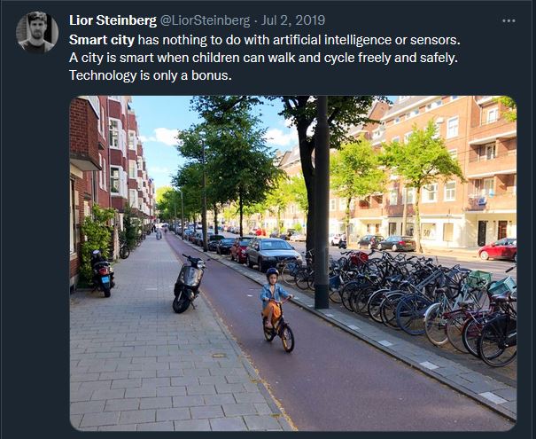 Lior Steinberg: "Smart city has nothing to do with artificial intelligence or sensors. A city is smart when children can walk and cycle freely and safely. Technology is only a bonus."