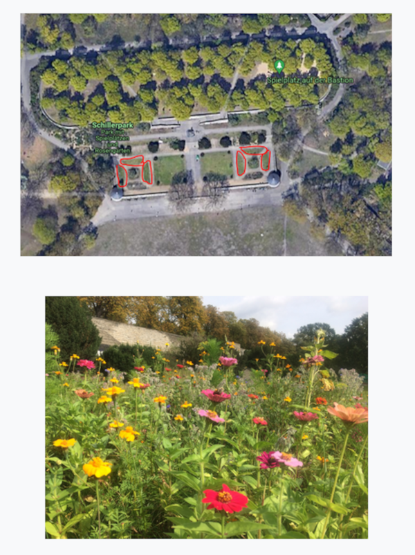 Wir möchten gerne eine Wildblumenwiese auf den brachliegenden Rabatten auf der ersten Terasse im Schillerpark anlegen.