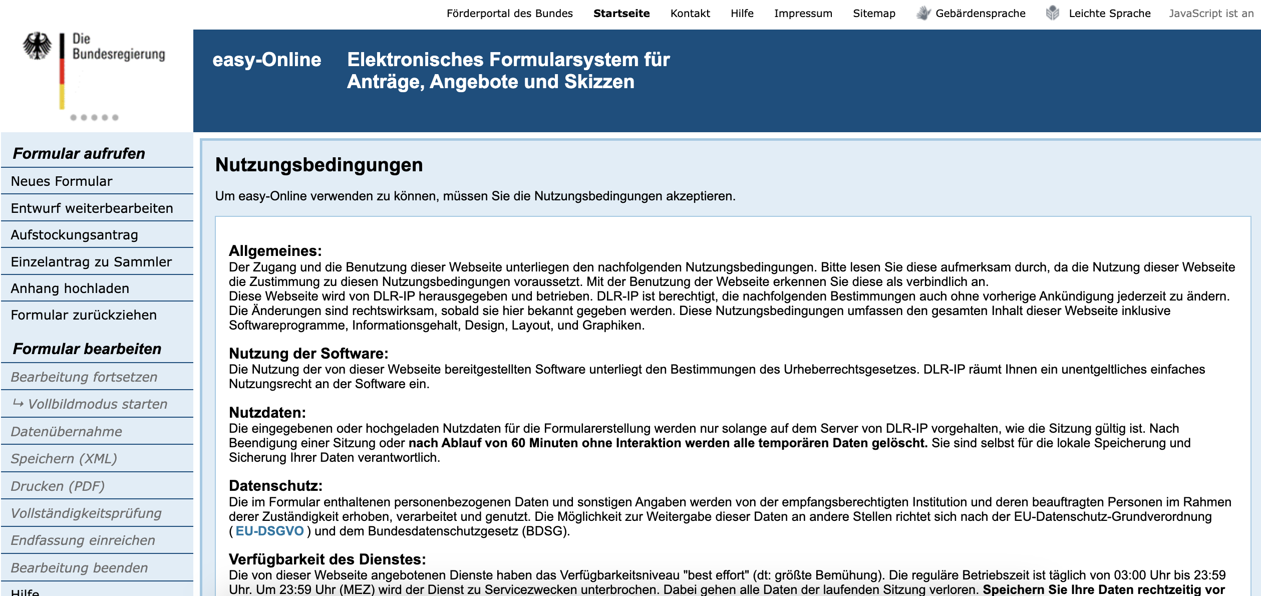 Die Beantragung von Fördermitteln erfolgt bisher in Abstimmung mit den Referaten und/oder Projektträger in Form von Excel-Tabellen und Dokumenten per E-Mail bzw. durch postalischen Versand der ausgedruckten unterschriebenen Anträge. Durch den Einsatz einer Online-Plattform wie auch bei Bundesministerien (z. B. easyonline: https://foerderportal.bund.de/easyonline/nutzungsbedingungen.jsf) kann der gesamte Antragsprozess digital abgewickelt werden. Das ist zum einen effizienter und zum anderen auch datenschutzrechtlich sicherer.