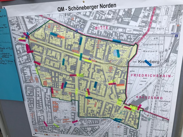 Der Quartiersrat Schöneberger Norden hat sich zum einen als Interessensvertreter der Bewohnenden des Kiezes, als Informationsquelle und zum anderen als Förderer von nachbarschaftlichen Kontakten und Austausch etablert. Kommunikation ist ein wichtiger Ankerpunkt bei diesen Aktivitäten. Auf seiner Webseite vermittelt der QR Informationen zu Anliegen im Kiez, die über andere Quellen nicht verfügbar sind. Durch Kiezspaziergänge werden Probleme des Kiezes angesprochen, wie etwa die Vermüllung, Gefahrenstellen für Menschen aber auch Informationen zu Ansprechpartnern wie etwa zu Antirassismus und Integration von Geflüchteten an Teilnehmende vermittelt. Die Kiezspaziergänge und Nachbarschaftsaktionen sind gut besucht und sollen fortgesetzt werden.