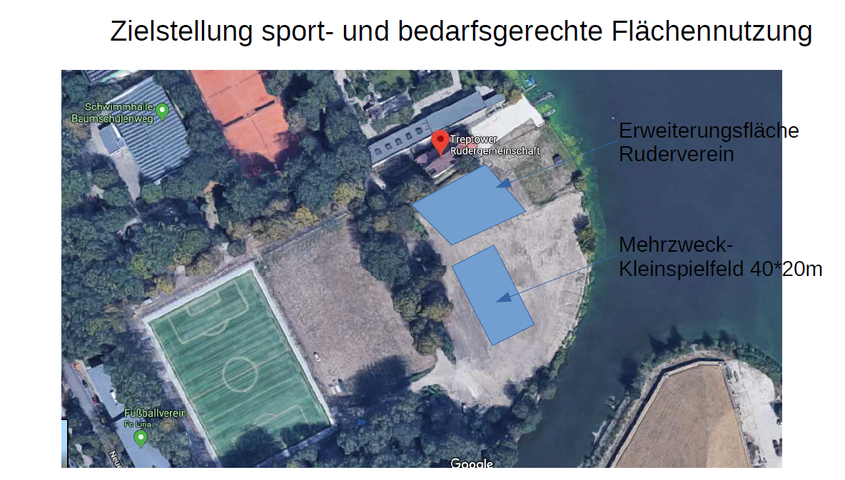 Die Treptower Rudergemeinschaft e.V. (hier vertreten durch Ihren Ersten Vorsitzenden Dr. Hans Huber) möchte vorschlagen, die für den Rudersport genutzte Fläche im Bereich Neue Krugallee 219-231 zu erweitern, um das Rudern in Treptow auch in Zukunft attraktiv gestalten zu können.