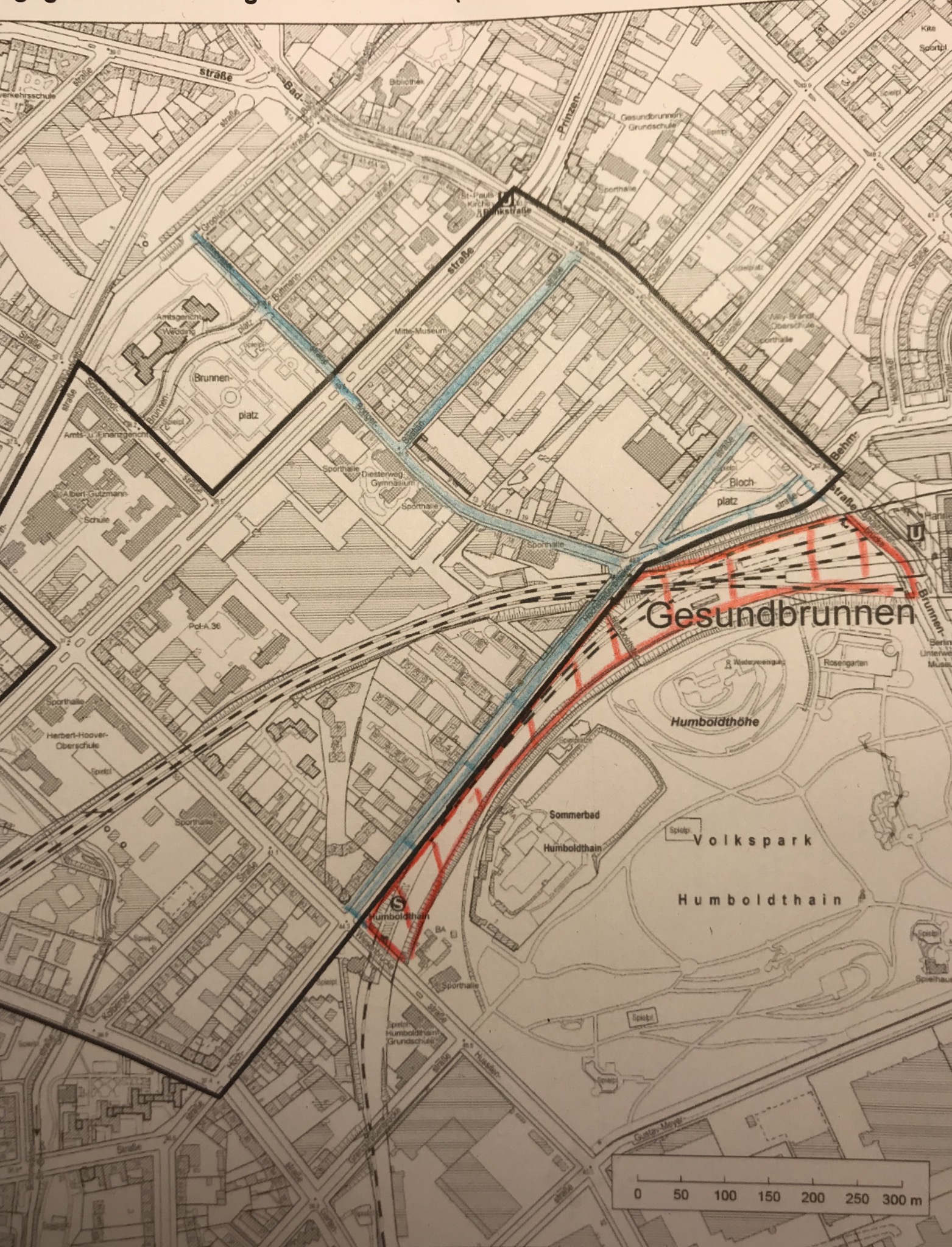 Die Gleise vom Bahnhof Gesundbrunnen bis zum S-Bahnhof Humboldthain sollen überbaut werden. Hier könnte ein Gelände mit Sportplätzen, Spielplätzen und anderen Freizeit angeboten entstehen sowie eventuell Gastronomie auf Höhe des Rosengartens und der Fahrradweg vom Prenzlauerberg könnte hier her führen.