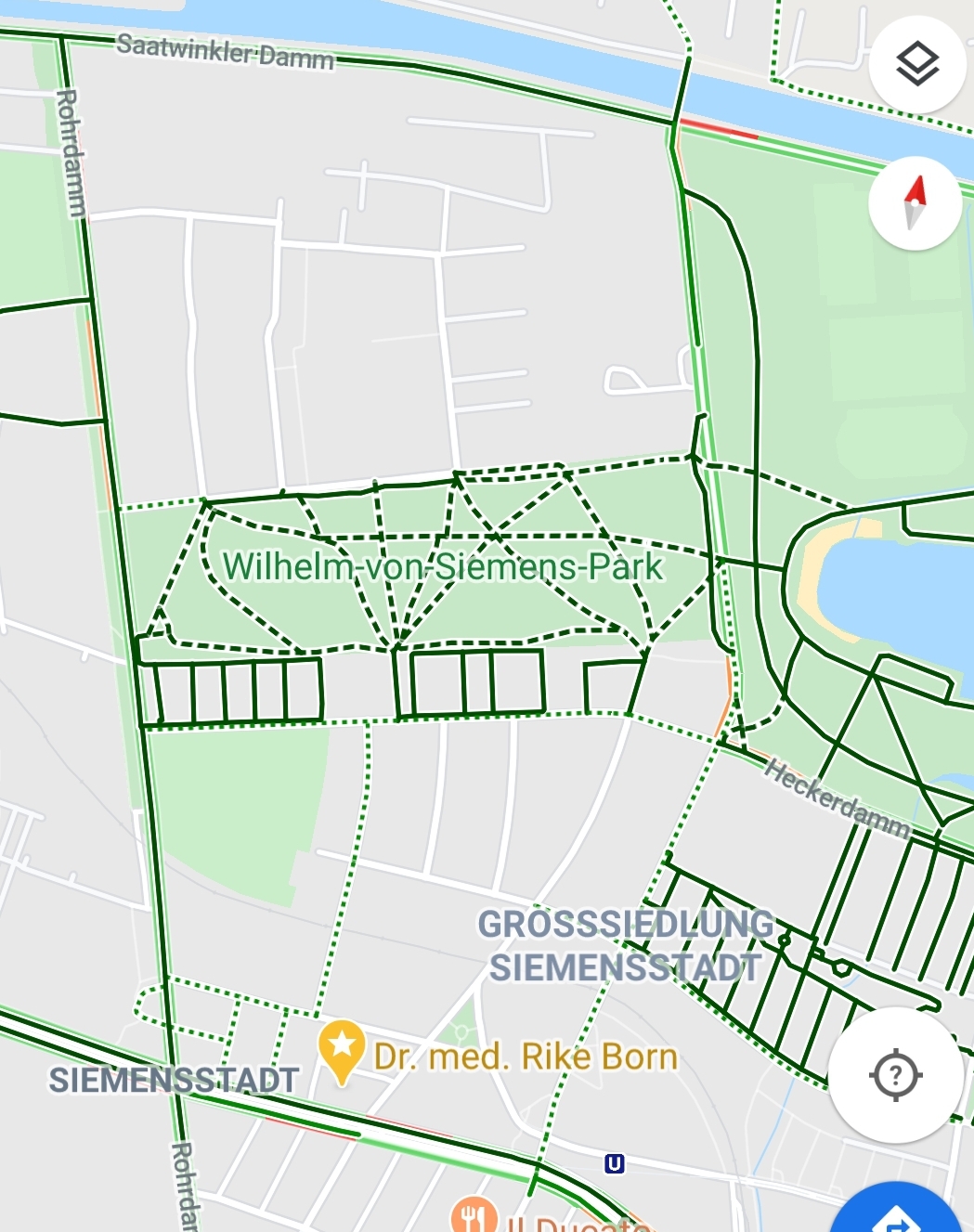 Viele Menschen bedeuten ebenso vieles Autos. Besonders da viele Teile von Spandau nur durch Buslinien erschlossen sind, benötigen die Bewohner ein Auto. In vielen Teilen von Siemensstadt besteht somit Parkplatznot. Die Parkplatzsuche gestaltet sich in der Umgebung (siehe Foto) insbesondere in den Abendstunden als sehr schwierig. Dadurch kommt es auch zu vielen Parksündern die entweder auf Grünstreifen oder den Gehwehen parken. Erschwert wird die Parkplatzsituation zudem durch die Hotelgäste vom Holiday Inn, die sich höchstwahrscheinlich sie teuren Parkgebühren für die Tiefgarage sparen wollen. Ebenso bei großen Veranstaltungen durch den SC Siemensstadt ist die Parkplatzsuche deutlich schwieriger. Natürlich sind diese Veranstaltung eine Bereicherung für den Kiez und sollten natürlich fortgeführt werden.
