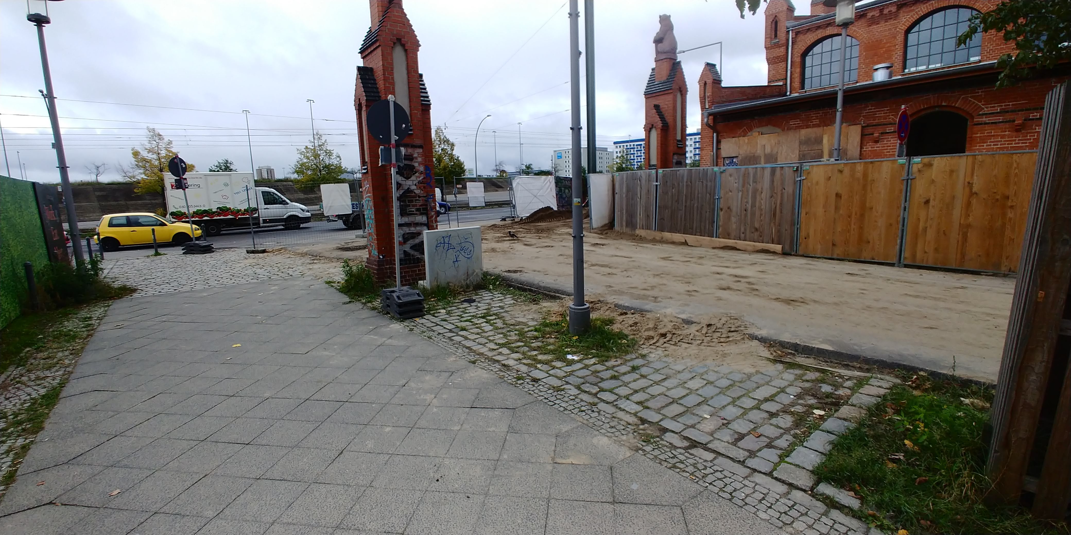 In Anbetracht der Bauaktivitäten und der hoffentlich baldigen Belebung auch dieses Abschnitts der Ostrowski-Str., sollte eine frühzeitige Platzierung von (Lasten)Radbügeln und Elektrorollerstellplätzen an diesen Stellen eingeplant werden.