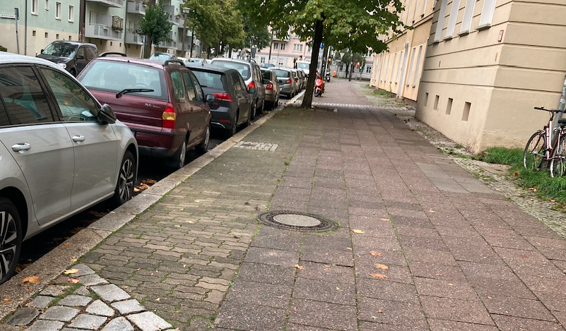 Radbügel auf der Fahrbahn im Bereich der John-Schehr-Straße 56-62.