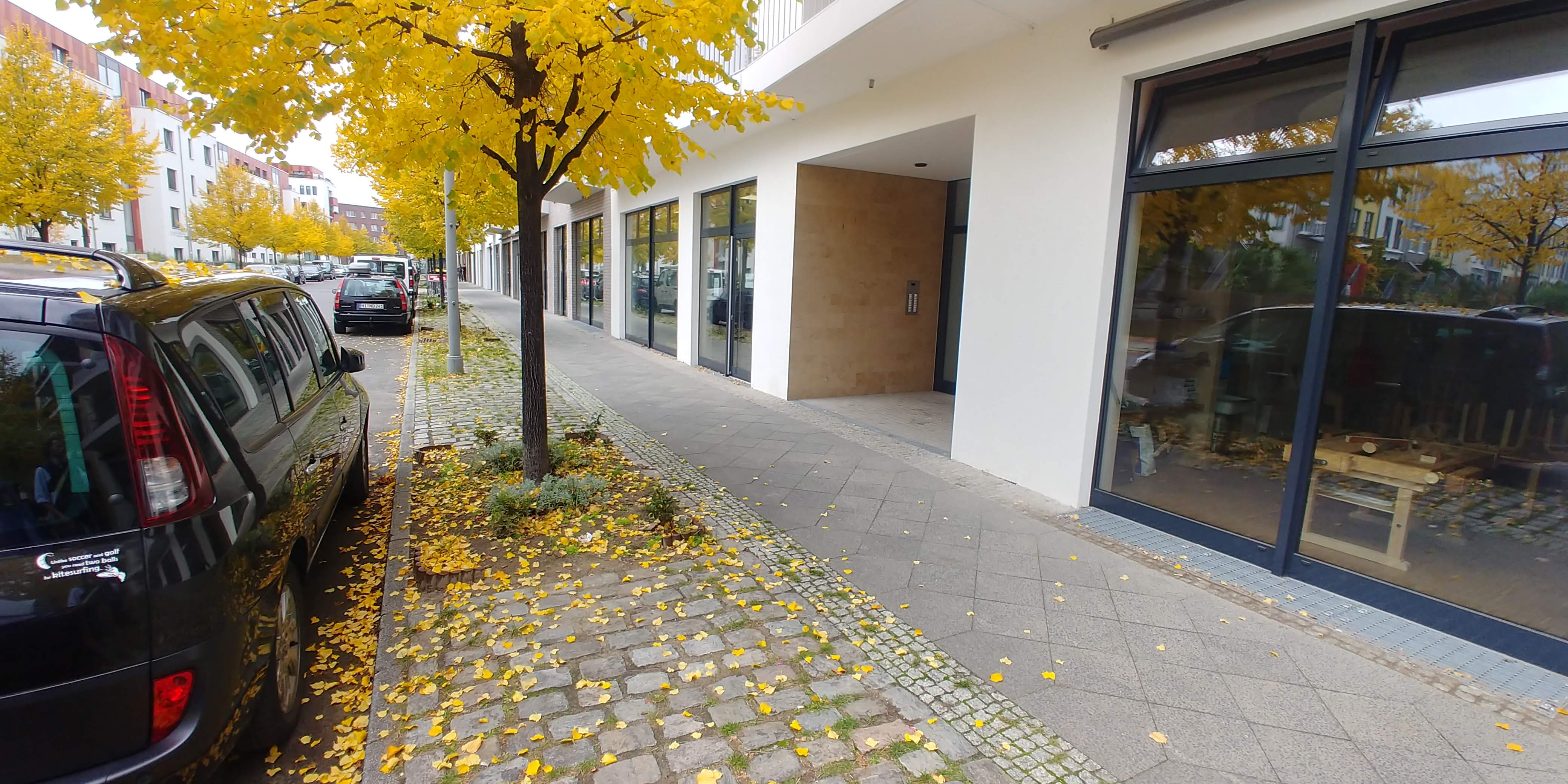 Statt nur temporärer Abstellmöglichkeiten für Fahrräder, besteht vor dem Eingang des Hauses Nr. 27 und auch dem Kindergarten im Ladengeschäft, ein ganz offensichtlicher Bedarf an sicheren (Lasten)Radbügeln für Bewohner wie auch Eltern, Kinder und Mitarbeitende der Kindertagesstätte.