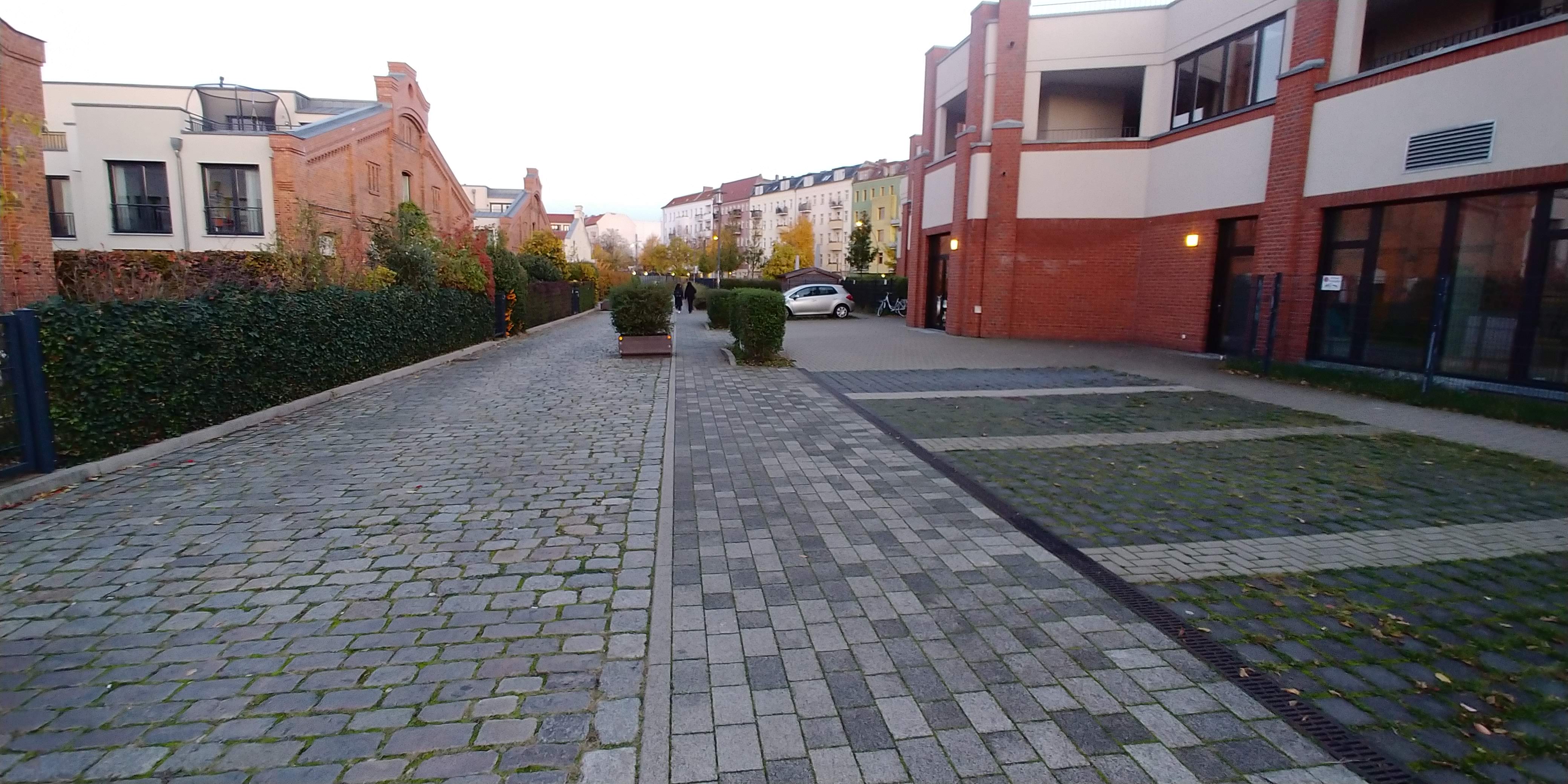 Falls nicht etwa die gesamte umliegende Anlage nur Privatstrasse sein sollte, würden sich die NutzerInnen der Kita, statt nur der Parkplätze und grünen Poller im Strassenraum, bestimmt auch über gleichsam wirksame, weil die Autos zum Langsamfahren zwingende, Lastenradabstellanlagen im Bereich vor dem Eingang freuen und diese auch sofort in Beschlag nehmen.