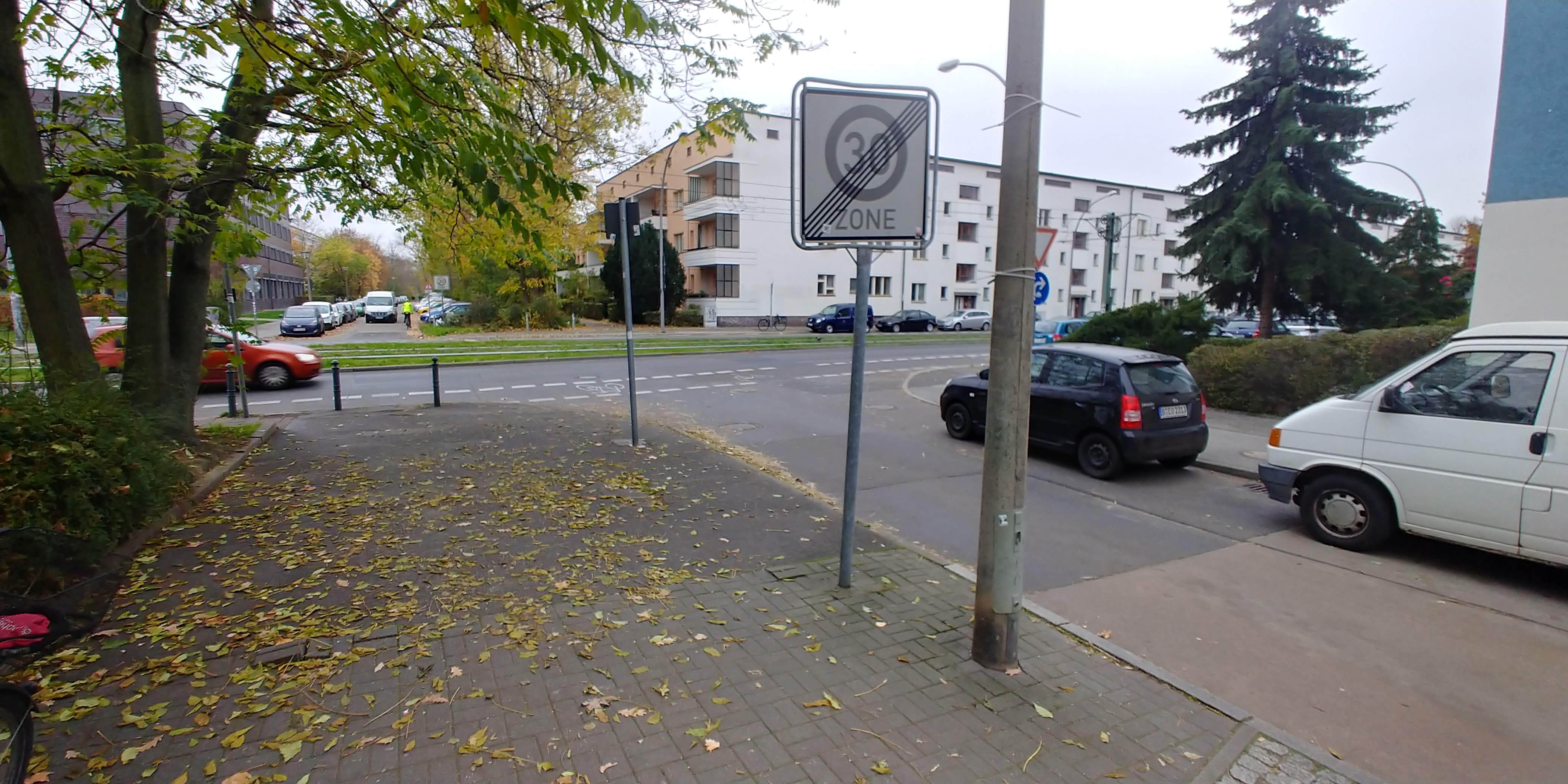 Buschallee 88-90, Einmündung zum Edeka Supermarkt