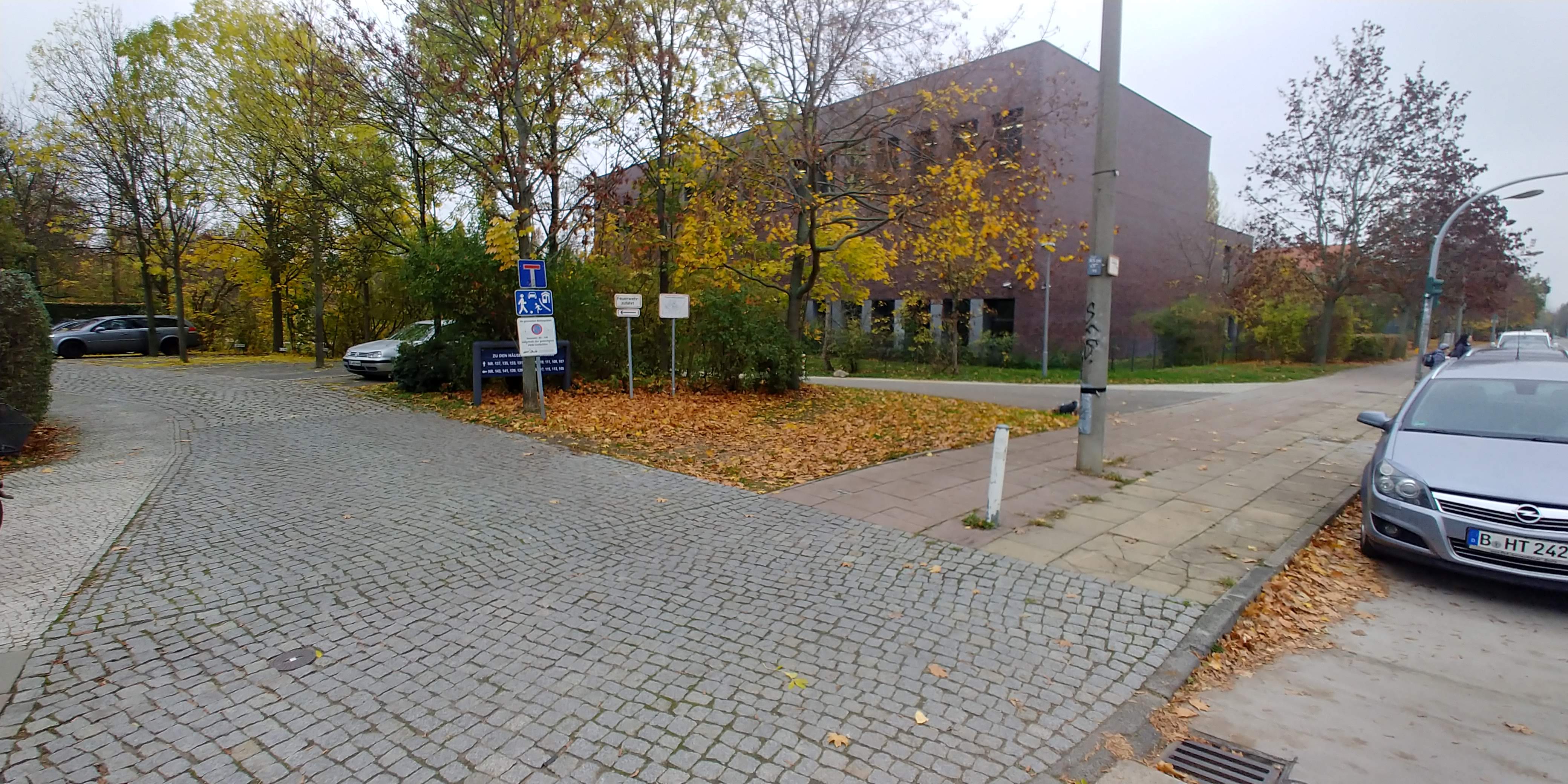 - Hansastr. 149-153, Grünstreifen zw. Feuerwehreinfahrt und Gehweg in die Grünanlage