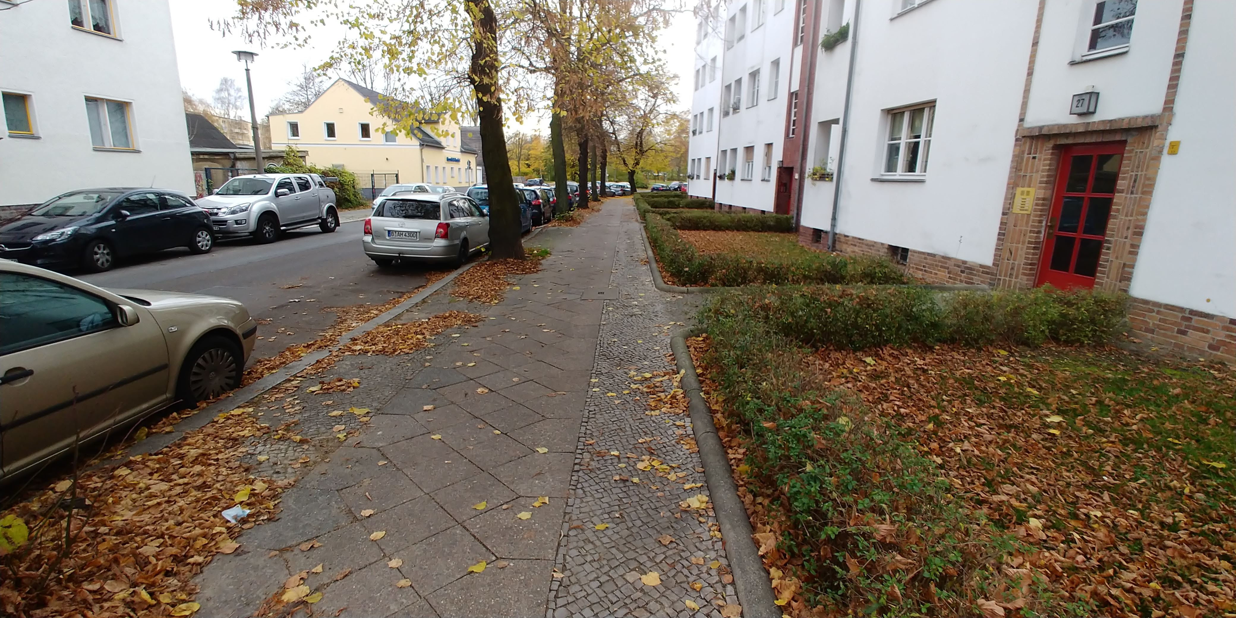 Die in der Gartenstrasse befindlichen Hauseingänge des historischen Wohnriegels entlang der Buschallee verfügen nur über wenige Stellplätze im seitlichen Innenhof, jedoch über keinerlei sichere Fahrradabstellanlagen in direkter Nähe der jeweiligen Eingänge.