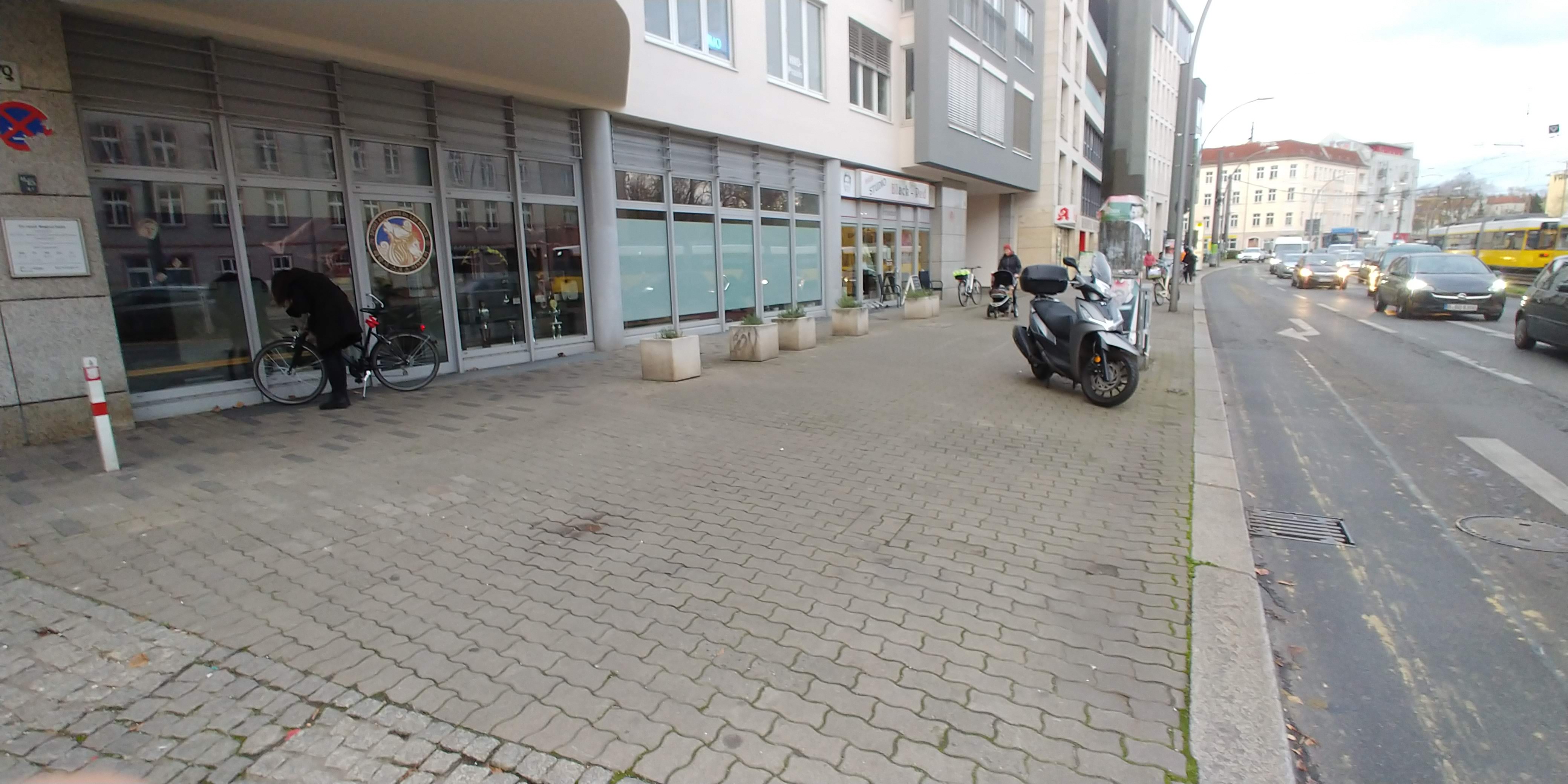 Trotz aller Umbaupläne für die Berliner Allee, welche noch Jahre auf sich warten lassen werden, sollte hier, unter Beachtung feuerrechtlicher Belange, kurzfristig eine Reihe von (Lasten)Radbügeln längs, entlang der Strasse, angeordnet werden, um sowohl die Behinderung und Gefährdung von zu Fuss Gehenden und auf dem Gehweg radelnden Kindern zu vermeiden helfen, als auch den Anwohnern, Kunden und Angestellen des Häuserblocks die benötigten sicheren Abstellanlagen vor der Tür, statt oft überfüllt und versteckt im Innenhof, endlich anbieten zu können,