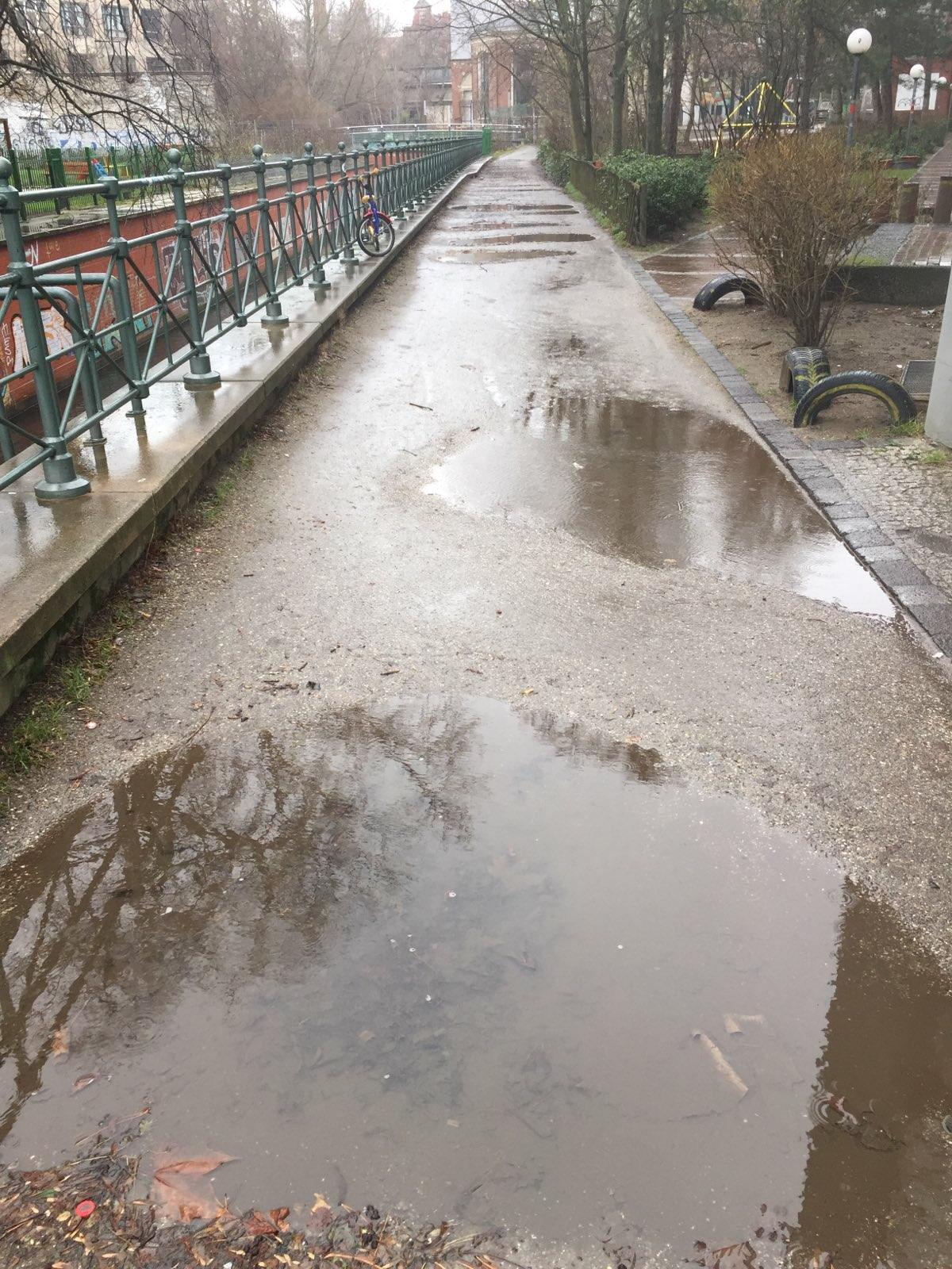 Besonders in der Strecke ab der Gerichstraße nördlich bis zur nächsten Brücke ist der Pankeweg sehr wellig und ohne Pflaster. Das ist Rollstuhlfahrer*innen immer unfreundlich und allen an regnerischen Tagen unfreundlich. Lass uns den Weg barriere- und schlammfrei machen!