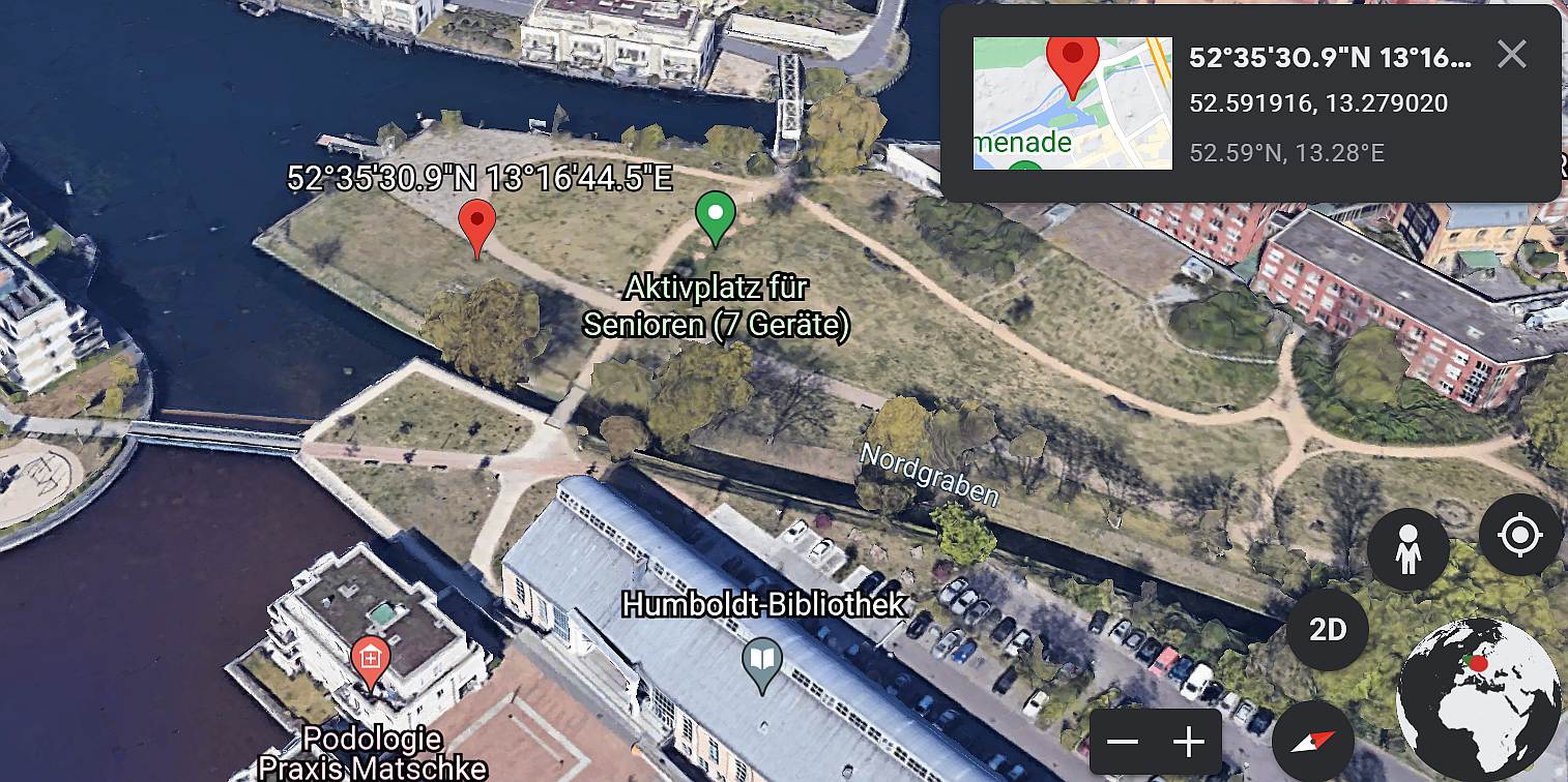 Grünfläche zwischen Humboldt-Bibliothek und Humboldt-Insel auf 10 Quadratmeter.