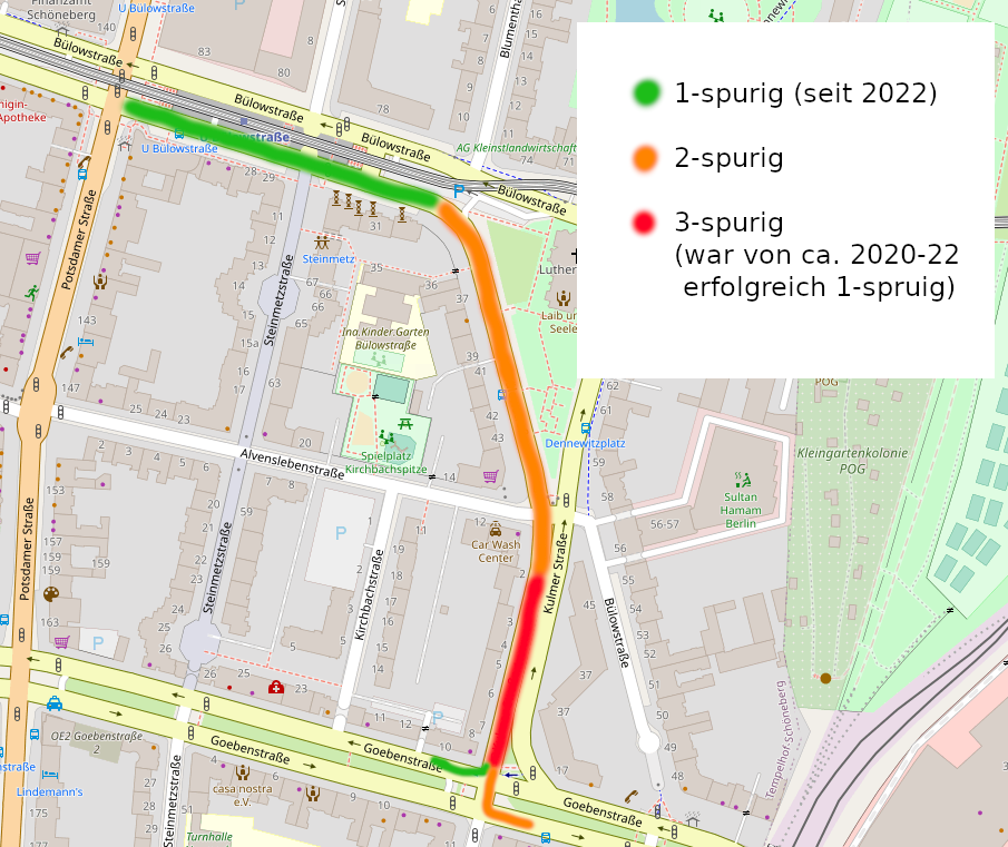 Vorschläge: -Tempo 30 belassen, nicht auf 50 erhöhen. -vorher ist es 1-spurig, dann 2-, hinterher sogar 3-spurig. Wieso? Das Verkehrsaufkommen ist gering, die Straße ist über-proportioniert. Früher war am Ende der Strecke für über 1 Jahr Baustelle. Spuren waren gesperrt, aber es gab aber nie Stau: nochmals, die Straße ist für das Verkehrsaufkommen zu groß. Es wird praktisch zum Rasen eingeladen. Sie könnte weiterhin 1-spurig sein, ein neuer Fahrradweg entstehen, es entstünde kein Verkehrschaos: Win-Win für alle. -Motorrad verbot von 22 bis 6 Uhr -Geschwindigkeitshügel -Dauerhafte Blitzanlage -Dauerhafte Schall-Messanlage -An Wochenenden öfters blitzen. -Ein Zebrastreifen von der Bülowstr. 38 zur Kirche.