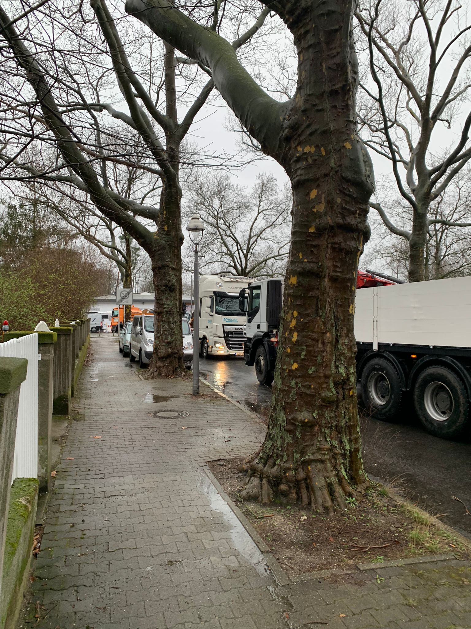 Es wurde letzte Woche eine Laterne (Romminterallee) beim Einfahren in den Machandelweg, von einem der Schwerlaster umgefahren. Eine Tiefbauabsperrung am Anfang des Machandelwegs ist mehrfach platt gebügelt worden und Straßenschilder haben hier keine lange Lebensdauer.