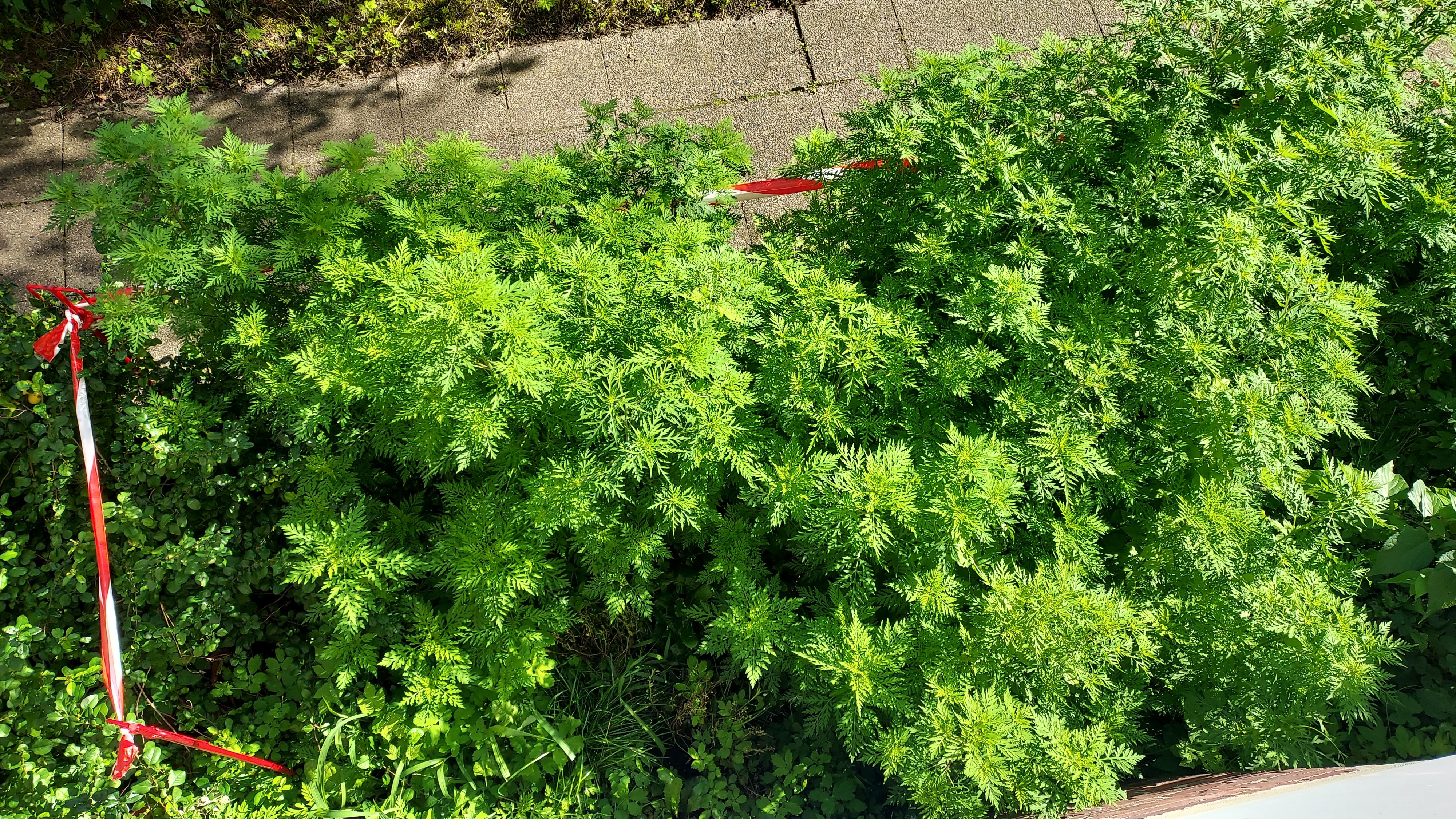 Auf einem Privatgrundstück konnte sich Ambrosia aufgrund von Vogelfutter etablieren.