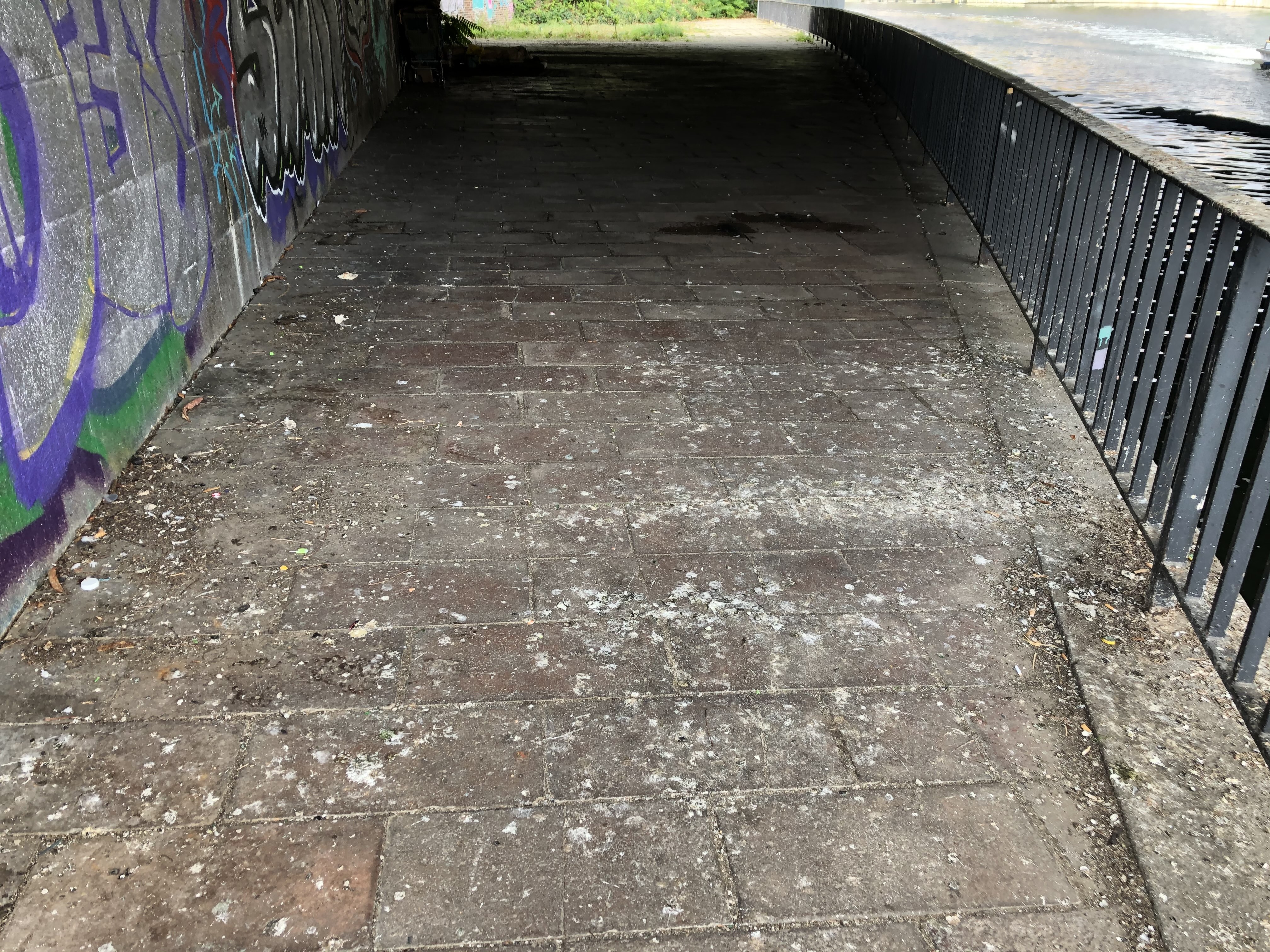 In sämtlichen Bereichen unter der Jannowitzbrücke herrscht ein schlechter Zustand für Fußgänger. Sowohl direkt am Wasser unter der Brücke als auch oben auf dem Bürgersteigen neben der Straße. Man muss ständig slalom laufen, aber man hat kaum eine Chance dem großflächigen Taubenkot auszuweichen. Mit Kindern eine Herausforderung! Ich meide den Wen entlang der Spree unter der Brücke, obwohl er so schön sein könnte und man könnte eine gefährliche Überquerung der Brückstraße durch die Nutzung des Weges unter der Brücke vermeiden. Im Dunklen kann man schon gar nicht dort lang gehen.