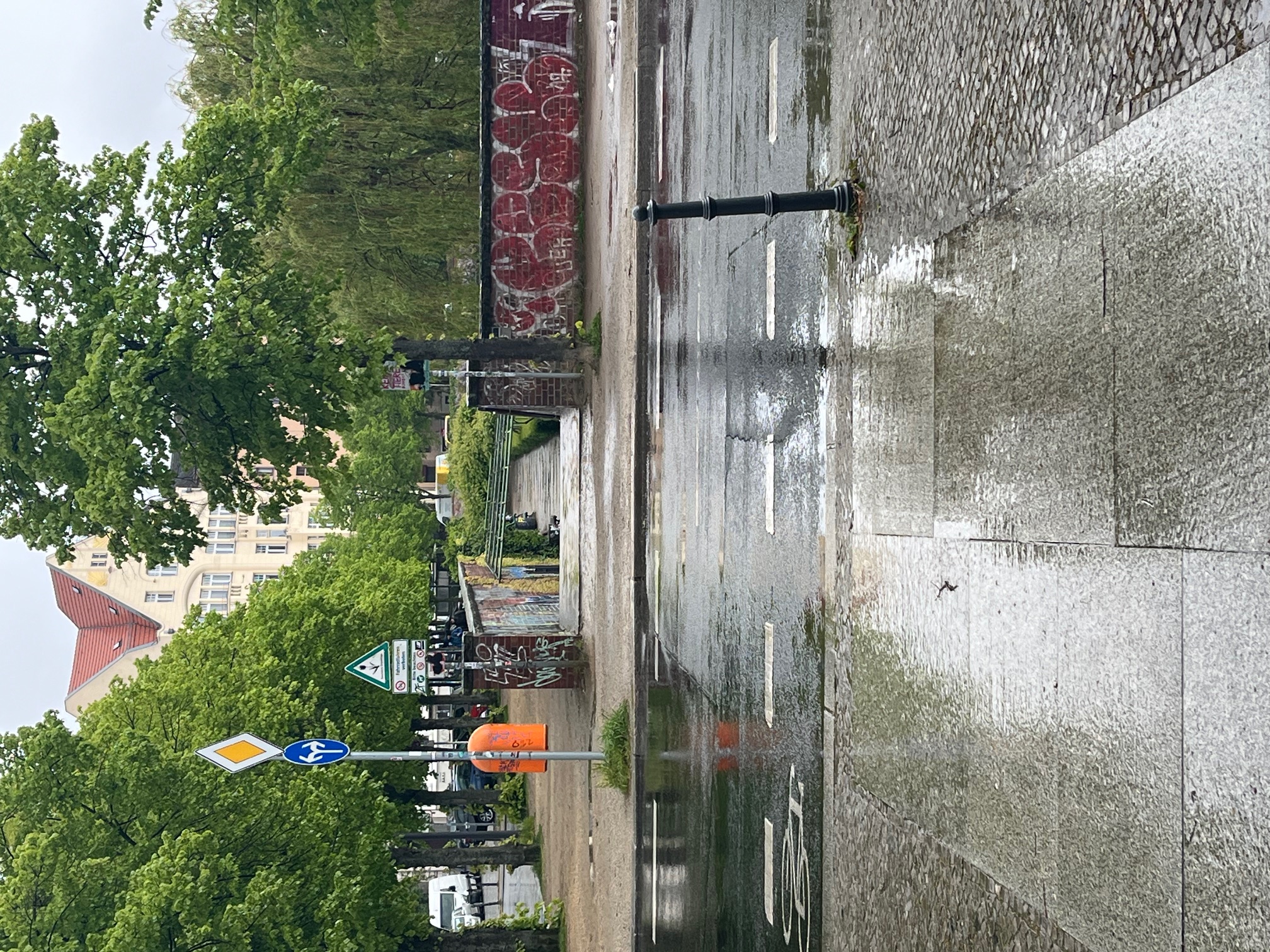 Auf der östlichen Seite des Engelbeckens ist eine Rampe für Rollstuhlfaher*innen, Menschen mit Kinderwagen, und andere Personen, die Hilfsmittel (z.B. Rollator etc.) benötigen. Es überqueren auch viele Eltern mit Kindern an dieser Stelle die Straße. An diesem Übergang ist es besonders gefährlich die Straße zu überqueren, weil an dieser Kreuzung auch eine unübersichtliche Verkehrsführung vorhanden ist. Abhilfe würde ein Bedarfsampel oder mindestens ein Zebrastreifen mit Geschwindigkeitsreduzierung (30er Zone) schaffen.