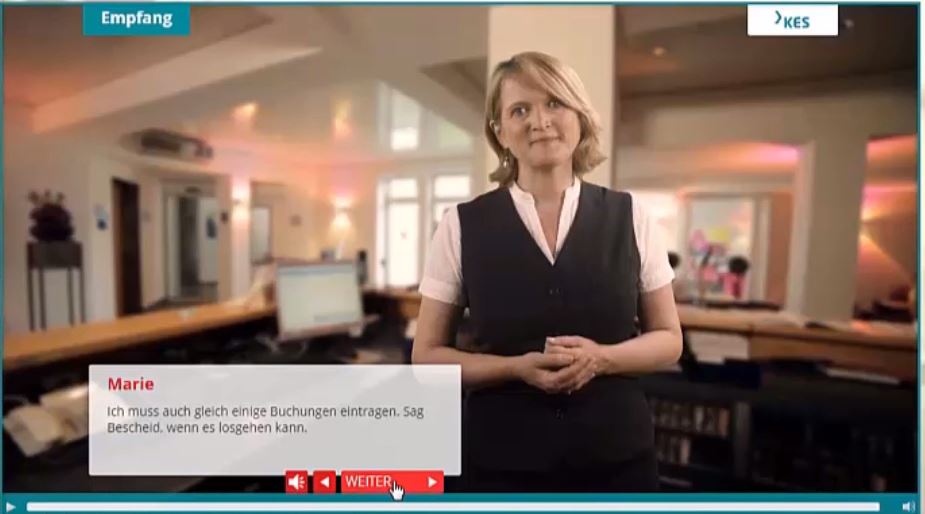 Das Programm funktioniert wie ein Computerspiel: Virtuelle Kolleginnen und Kollegen stellen praxisnahe Aufgaben. Die Nutzerinnen und Nutzer reagieren per Mausklick; wann und wo sie wollen, ganz im eigenen Tempo. Am Ende haben sie wichtige Regeln und Abläufe trainiert, Sicherheitshinweise verstanden und die Lese- und Schreibfähigkeit am Arbeitsplatz verbessert.