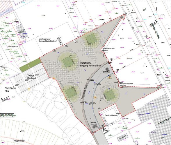 Der Eingangsbereich des Poststadions entspricht aktuell weder den funktionalen noch den gestalterischen Ansprüchen und Anforderungen an den Hauptzugang zu den Sport- und Erholungsflächen des Poststadions.