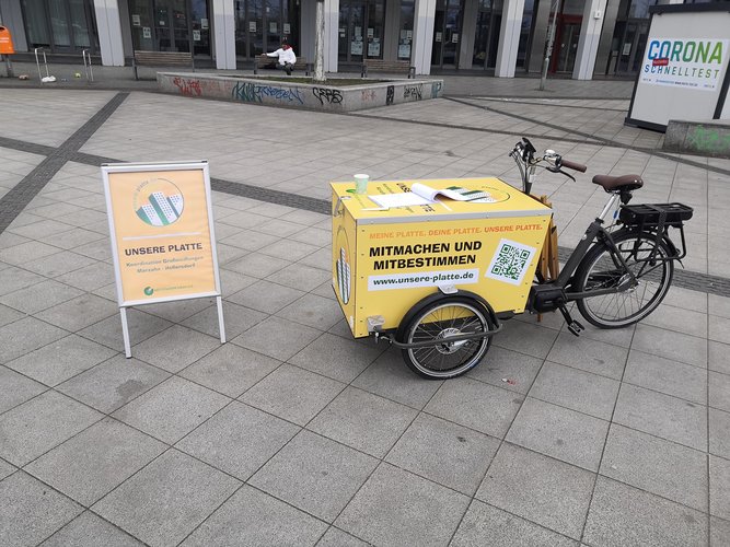 Bei den Mobilen Sprechstunden geht es darum mit Bürgerinnen und Bürgern der Großsiedlungen in Kontakt zu kommen und zu erfahren, welche Bedarfe sie ihre Nachbarschaft haben.