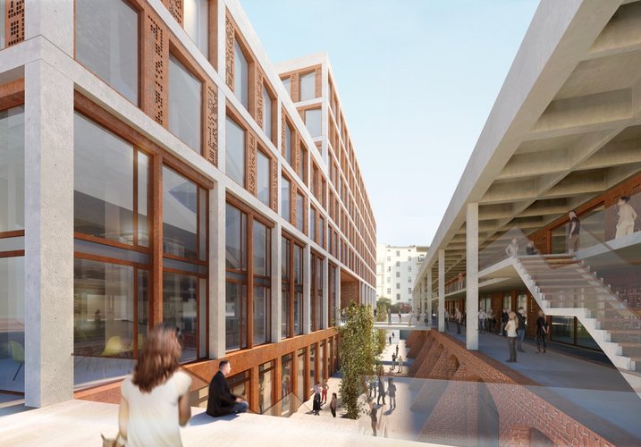 Neubau eines Büro- und Gewerbeensembles als Blockrandschließung und Blockinnenbebauung.