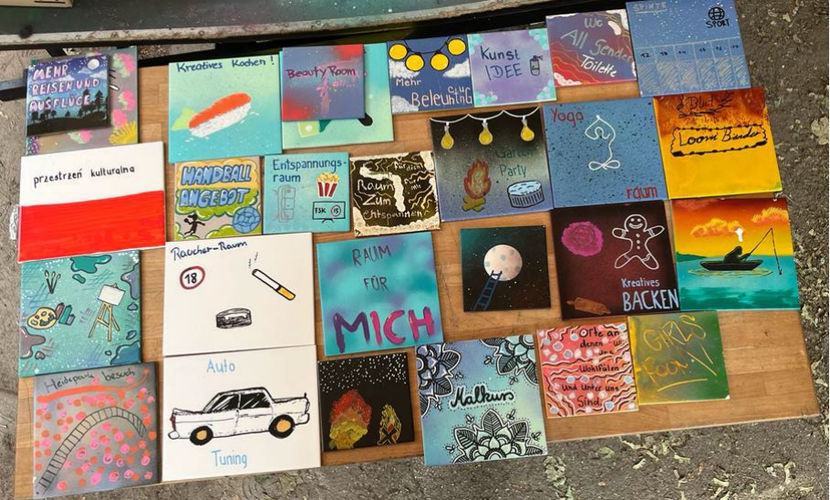 Fliesen wurden mit Wünschen zu Angeboten im Wildwuchs besprüht. Anschließend wurden diese nach Themenfelder sortiert und für bereits umgesetzte Maßnahmen wurden die Fliesen zerschlagen. Die zerschlagenen Fliesen sollen zu Mosaikmöbel verbaut werden. Für die übrigen Fliesen, bei welchen die Maßnahmen noch nicht umgesetzt wurden, haben die Kinder und Jugendlichen Projektsteckbriefe erarbeitet. Diese sollen in Zukunft in der Einrichtung umgesetzt werden.